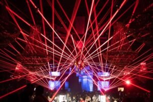 Dynamic laser systems with logos and animations. Ideal for product launches, concerts, and brand activations.